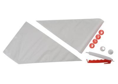 Confezione di 10 saccapoche monouso in PE lunghezza 34 cm, e 4 bocchette assortite in PP.
