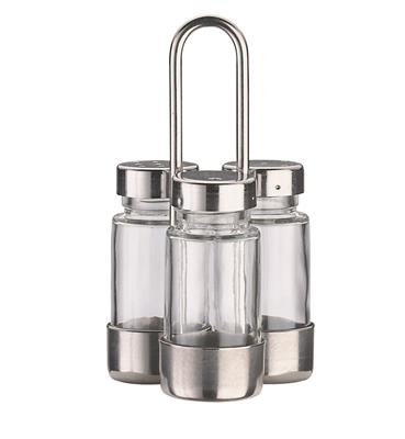 Set porta sale + pepe + stuzzicadenti in acciaio e vetro