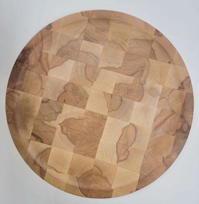Tagliere artigianale rotondo a scacchi.