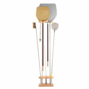 Supporto universale 3 posti in acciaio inox e legno, completo di poggia pale in legno